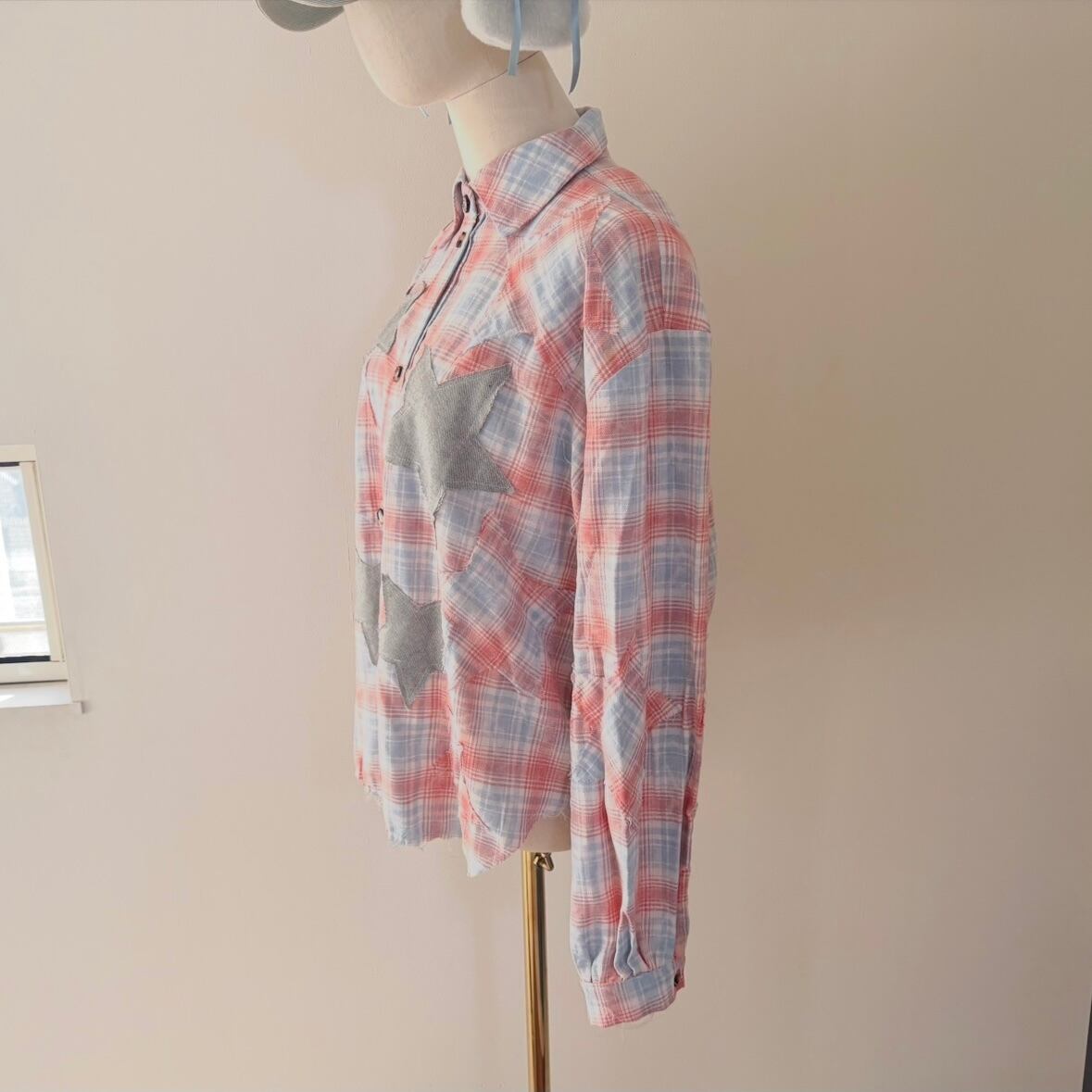 こちらのシャツは巻いたりすると星のモチーフがコーディネートのアクセントになって楽しめます。