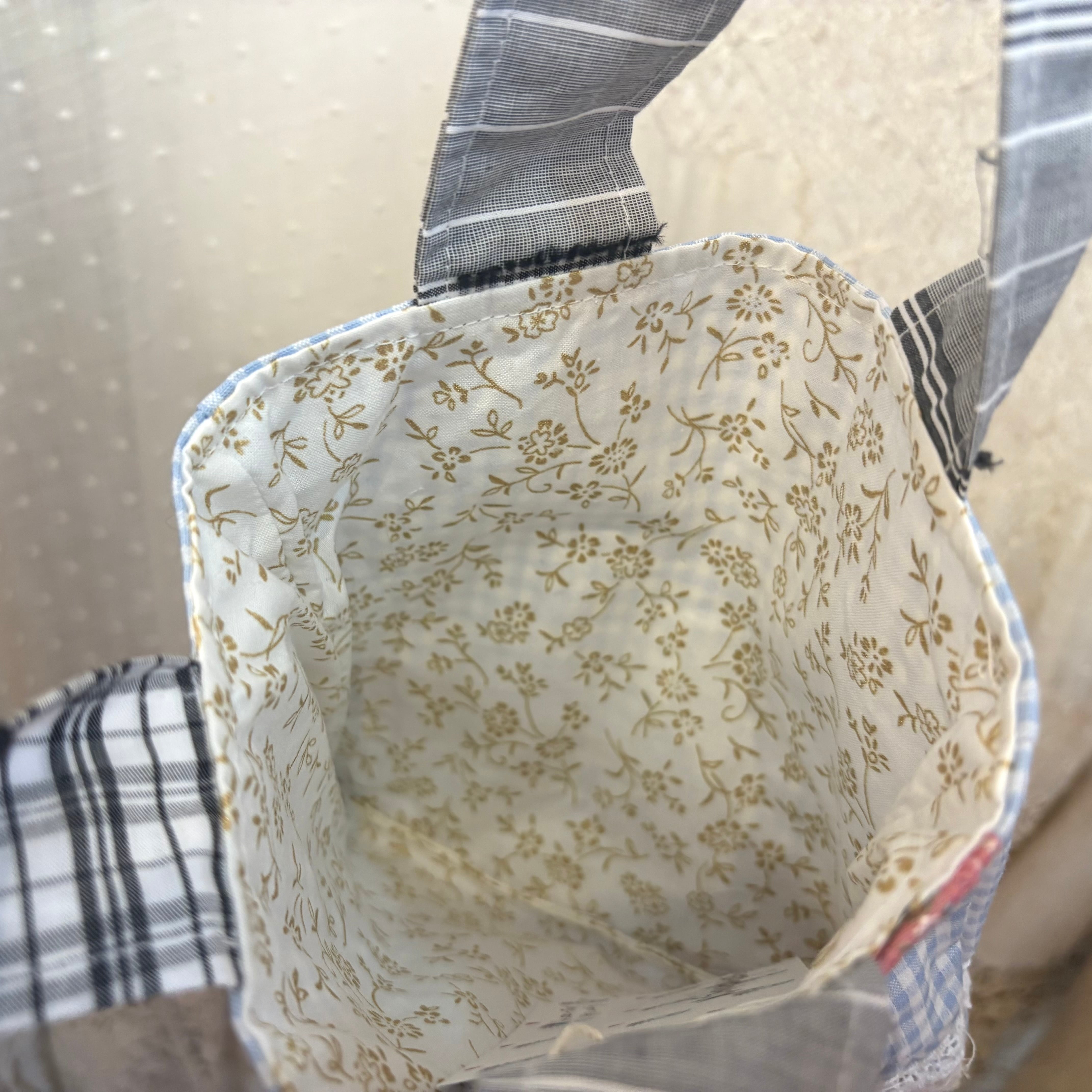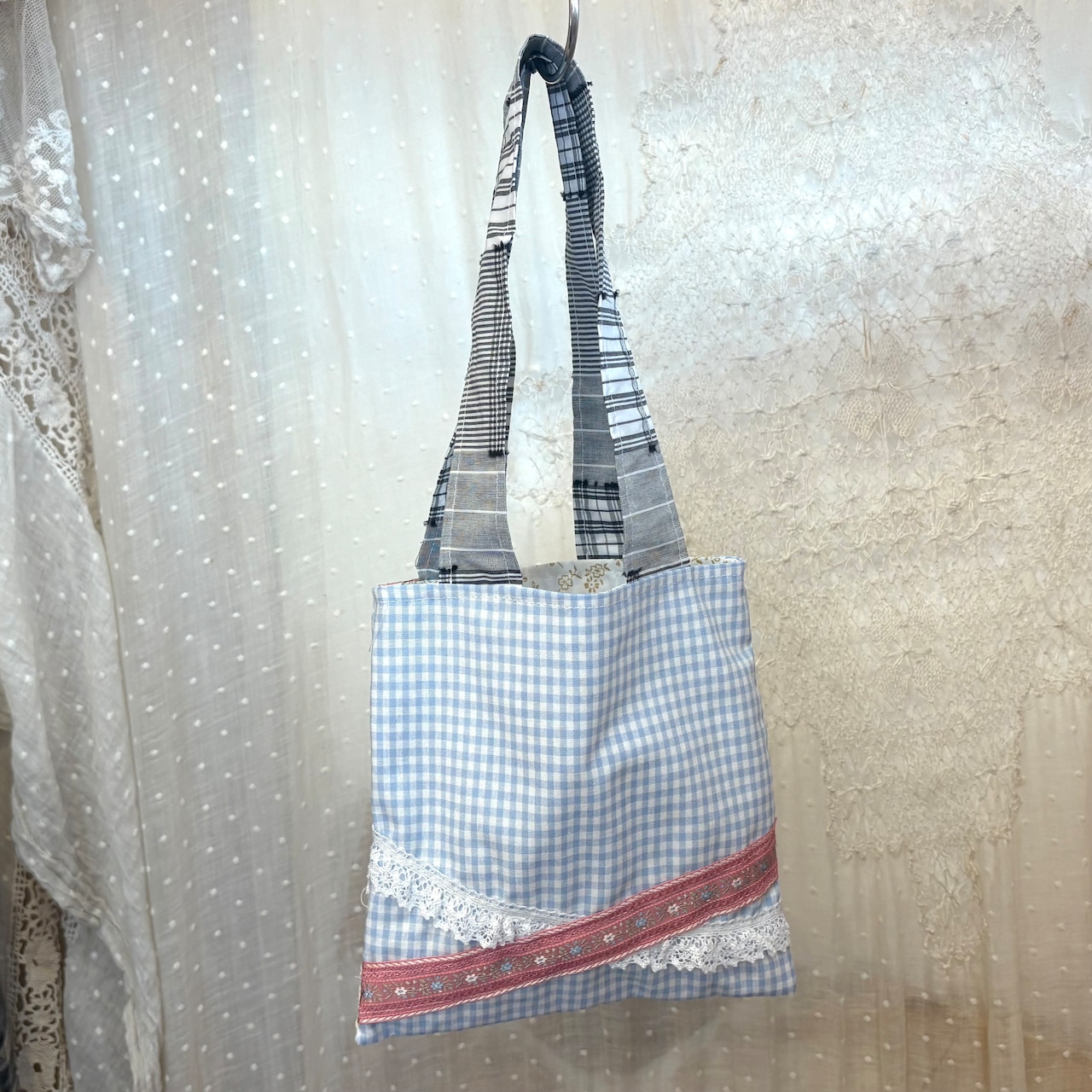 平置きサイズ:横19、縦19.5、持ち手の長さ44㎝ほど