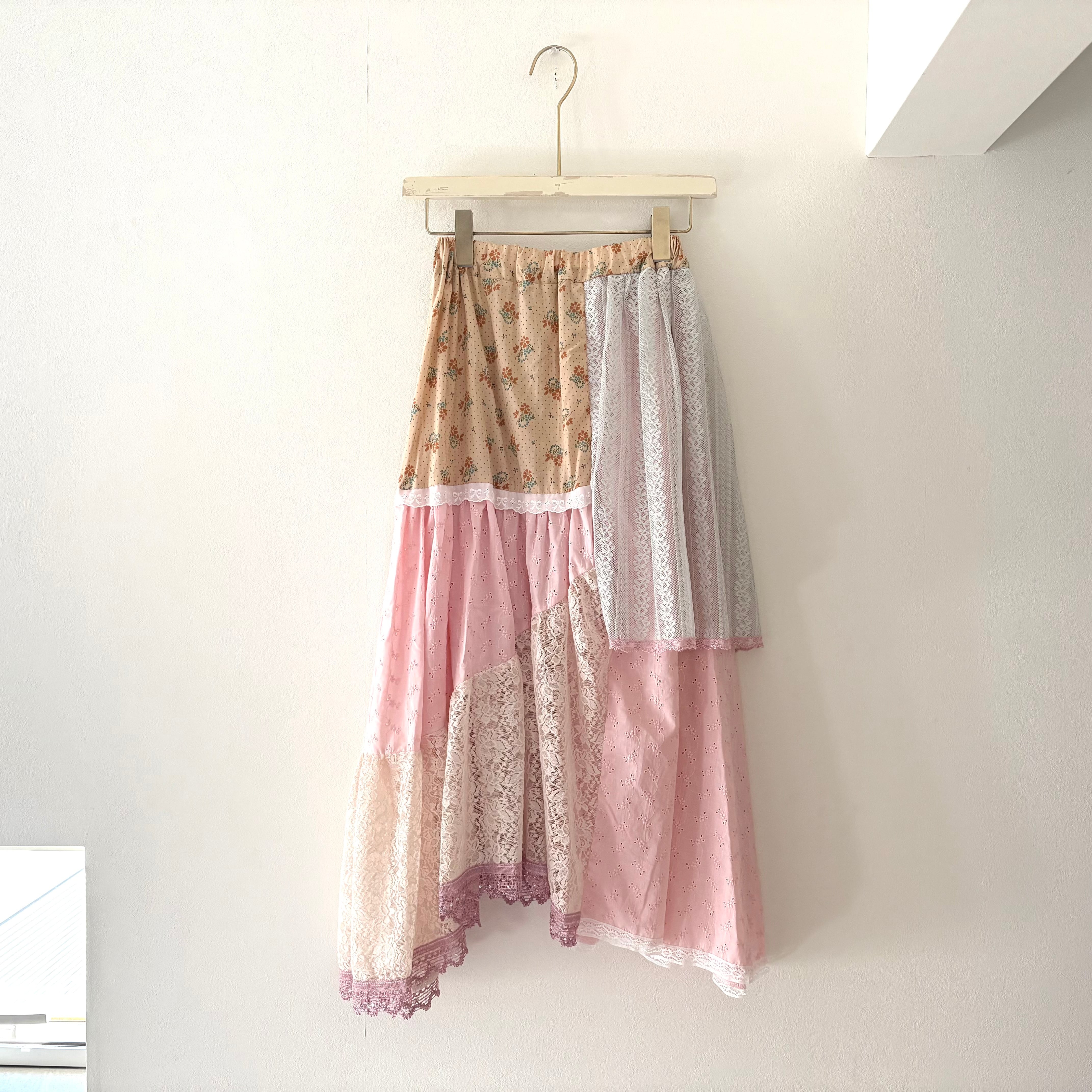 yushokobayashi2025-26aw collection"anthology"より入荷しました。 パッチワークのスカート裾の長さがまちまちなところも可愛いバランスです。