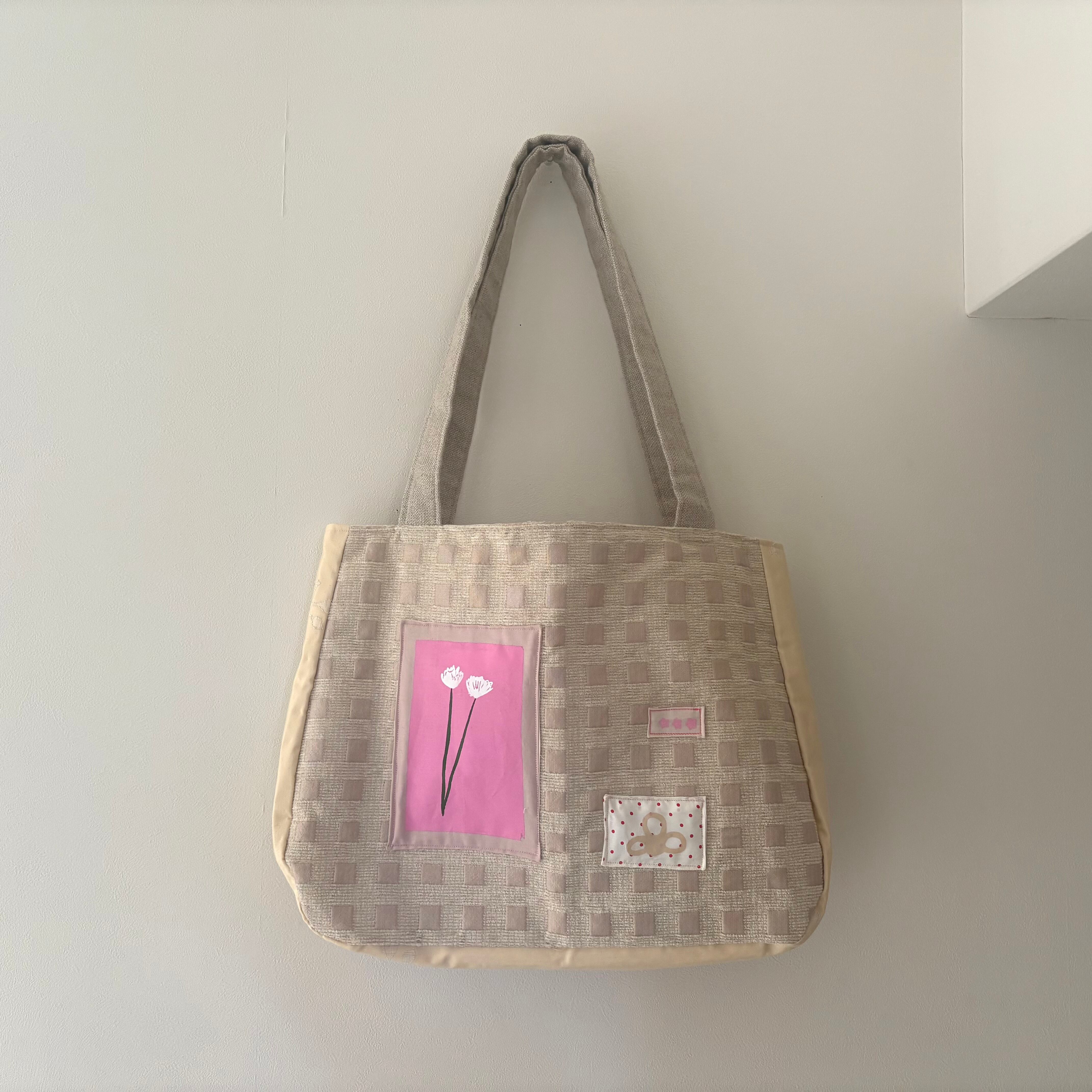 ハンドプリントのアップリケが可愛いトートバッグ