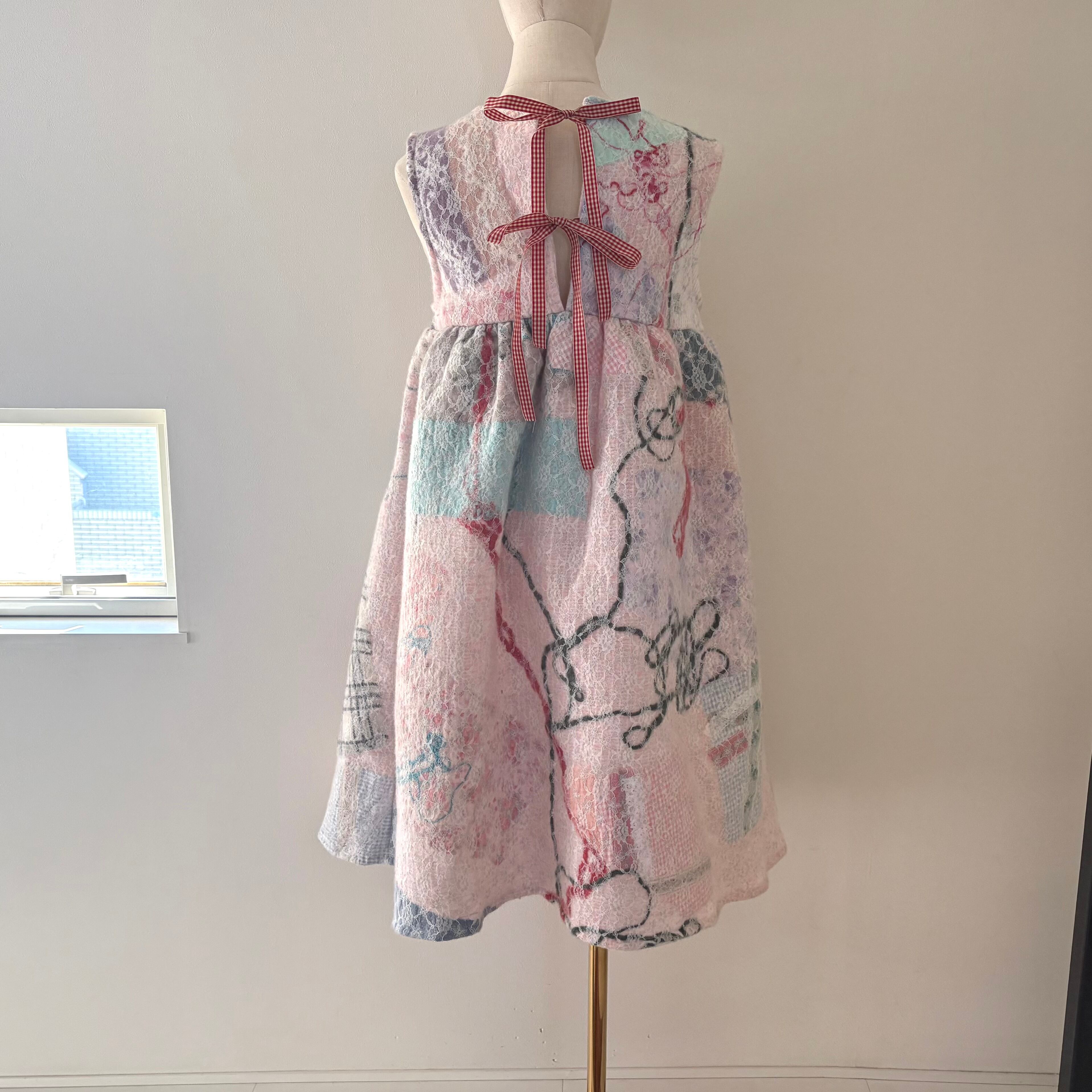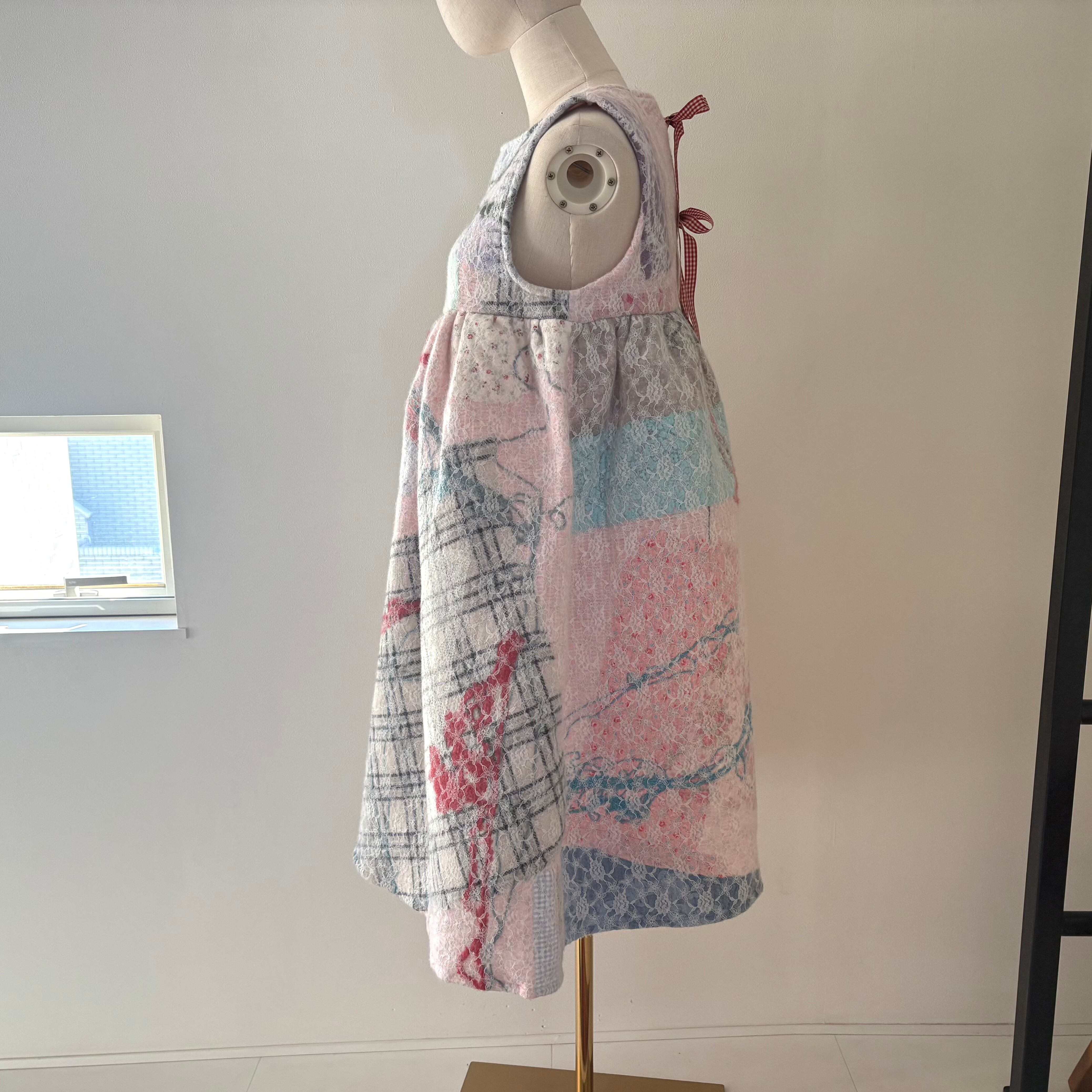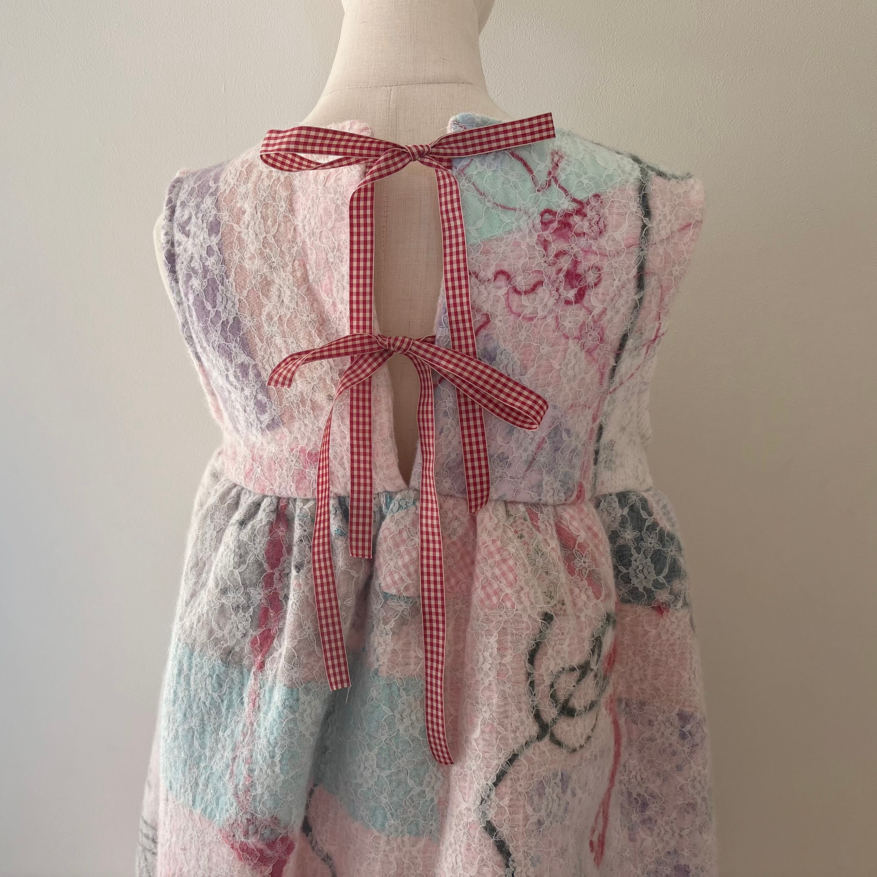 背中はギンガムチェックのリボン留め