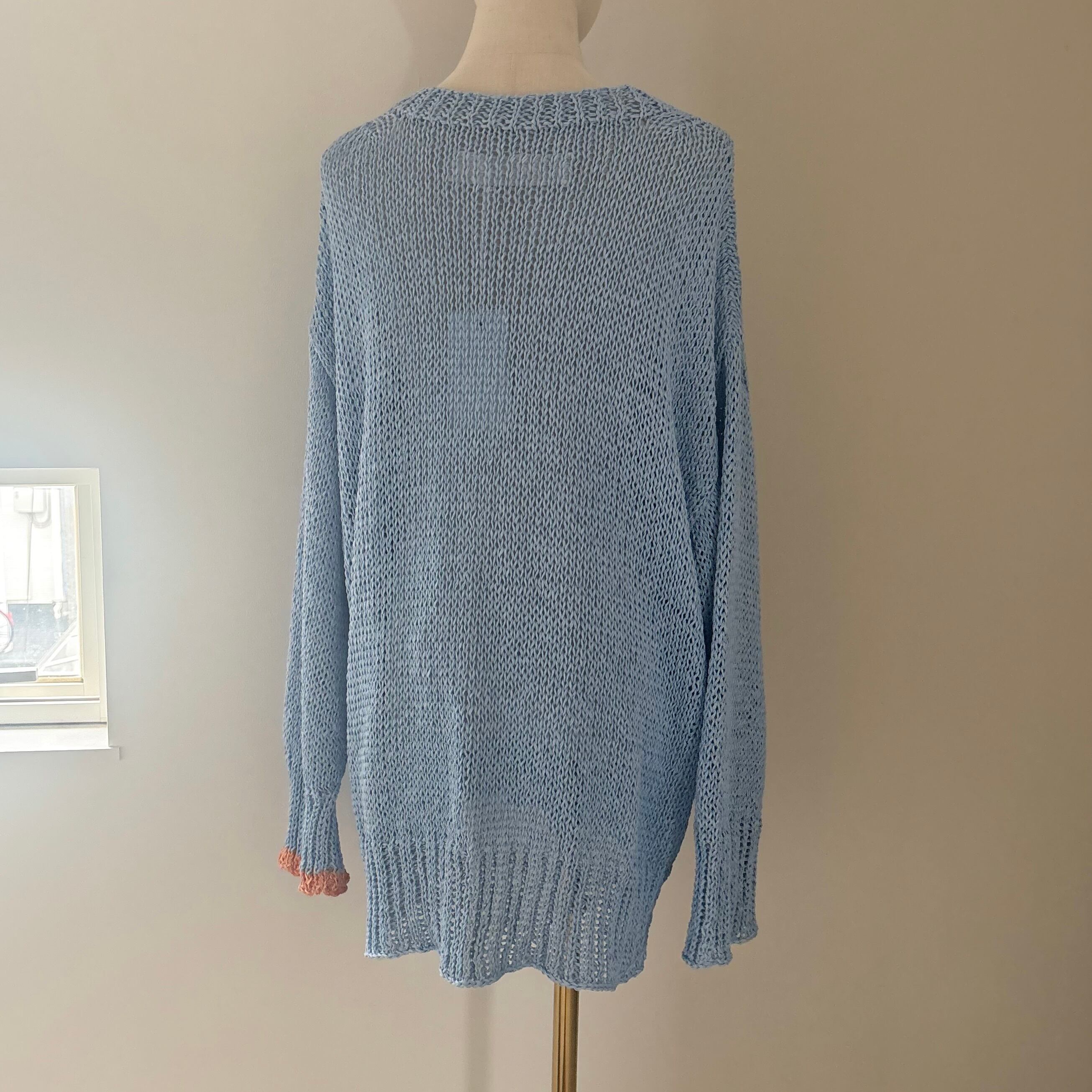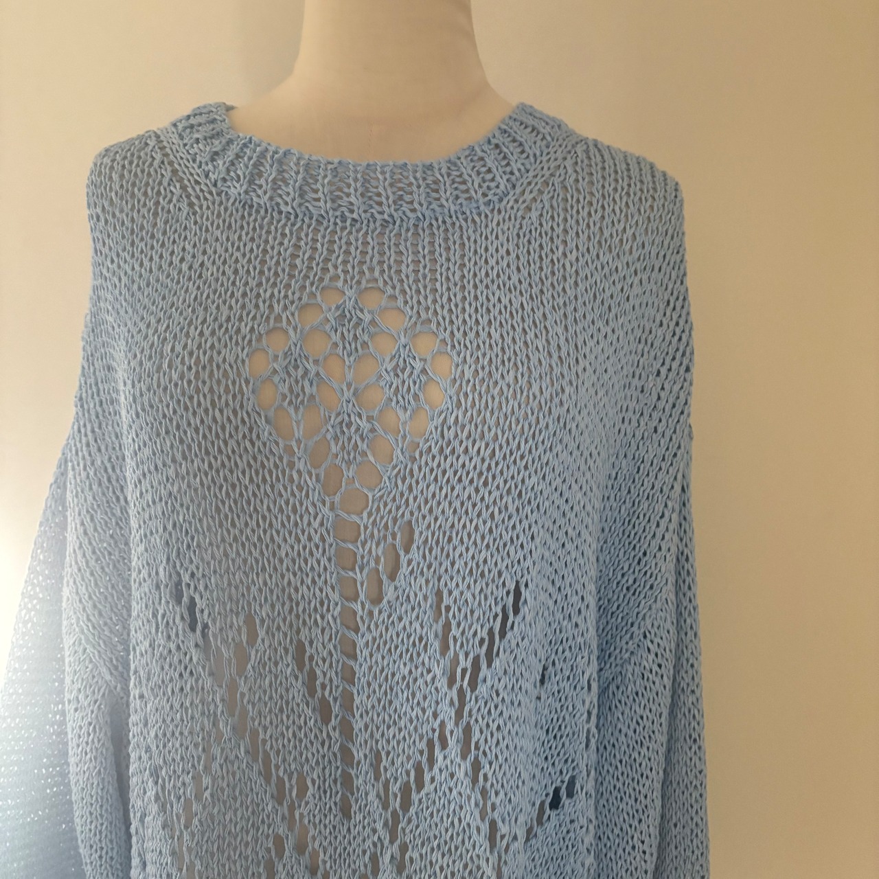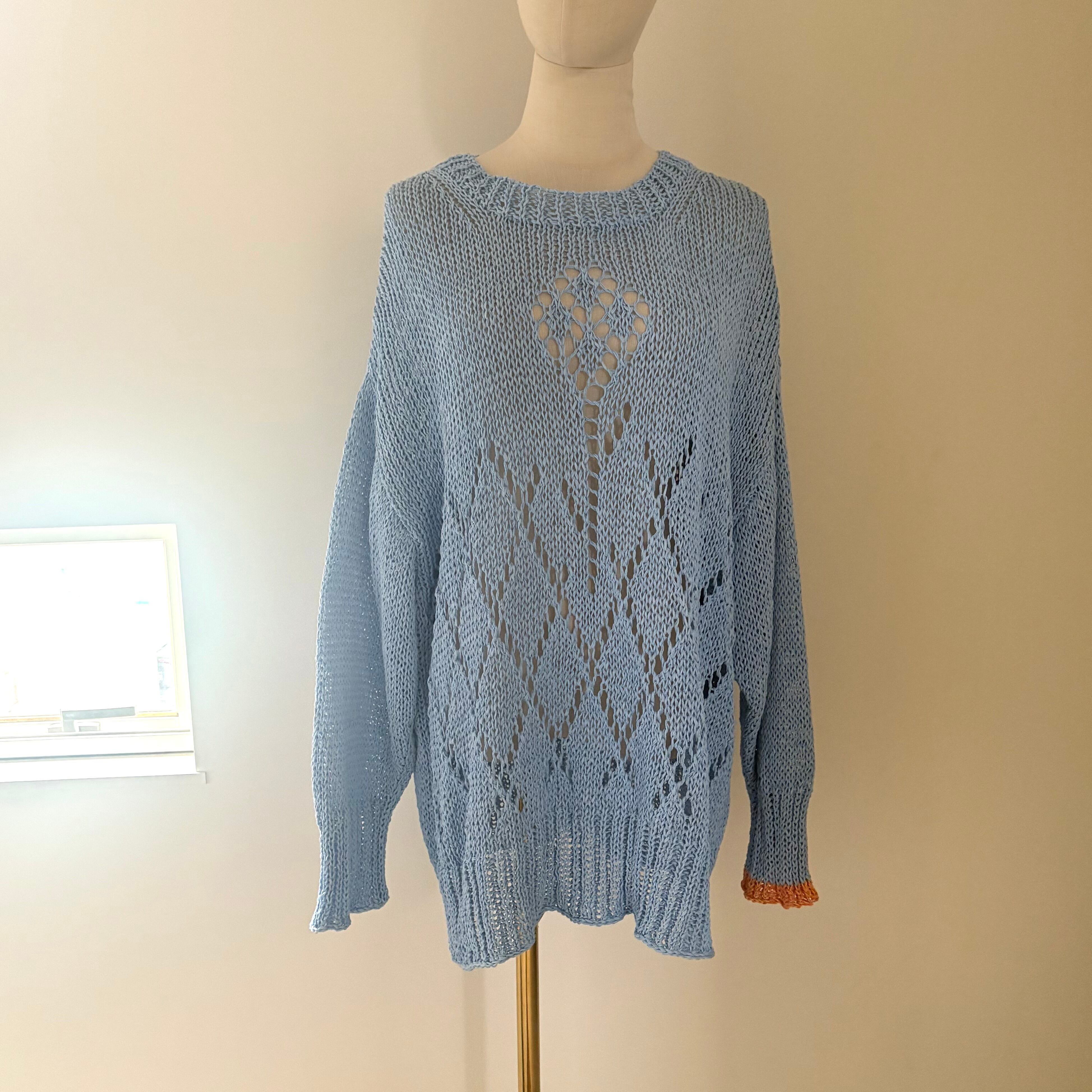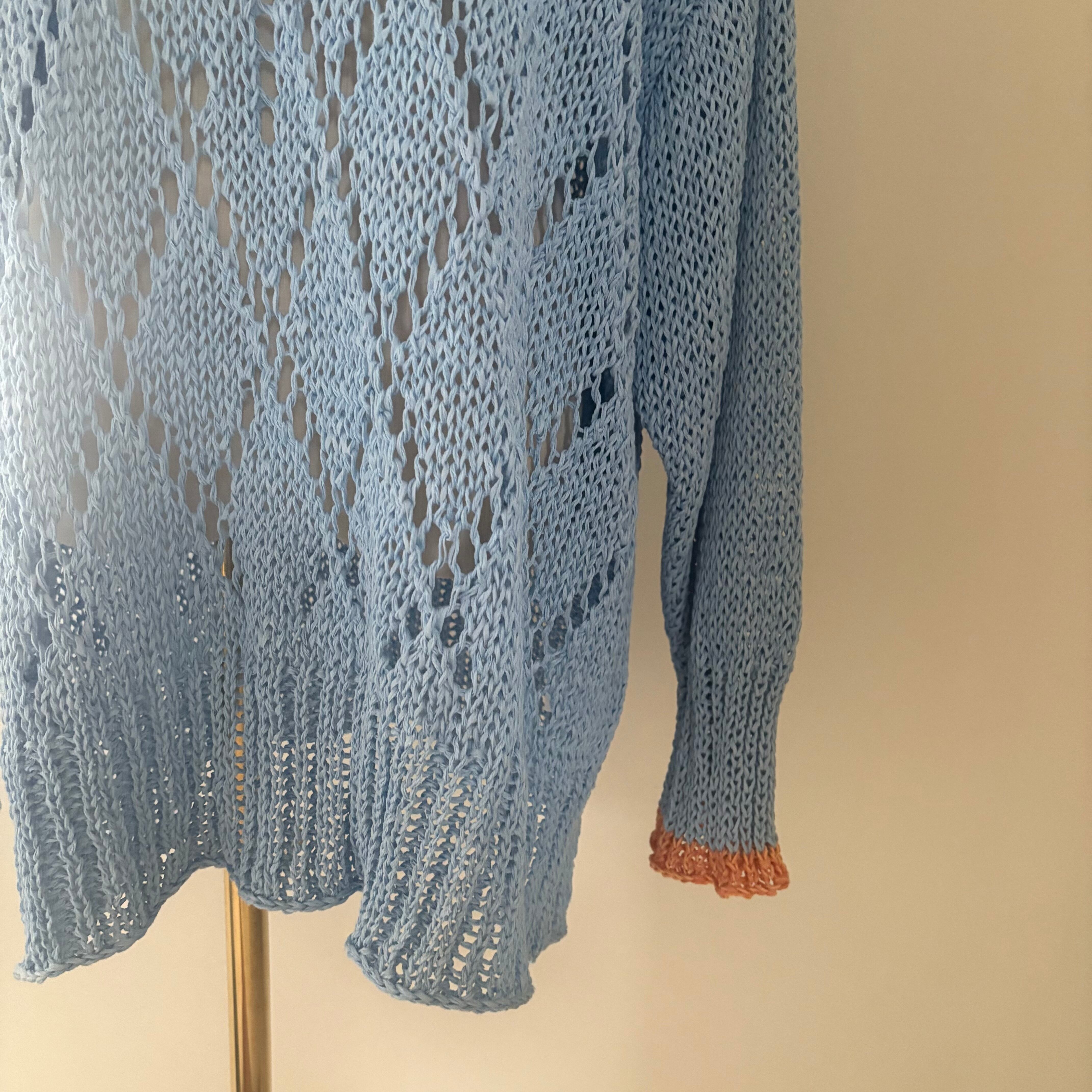 osakentaro/フラワーレース編みセーター ブルー