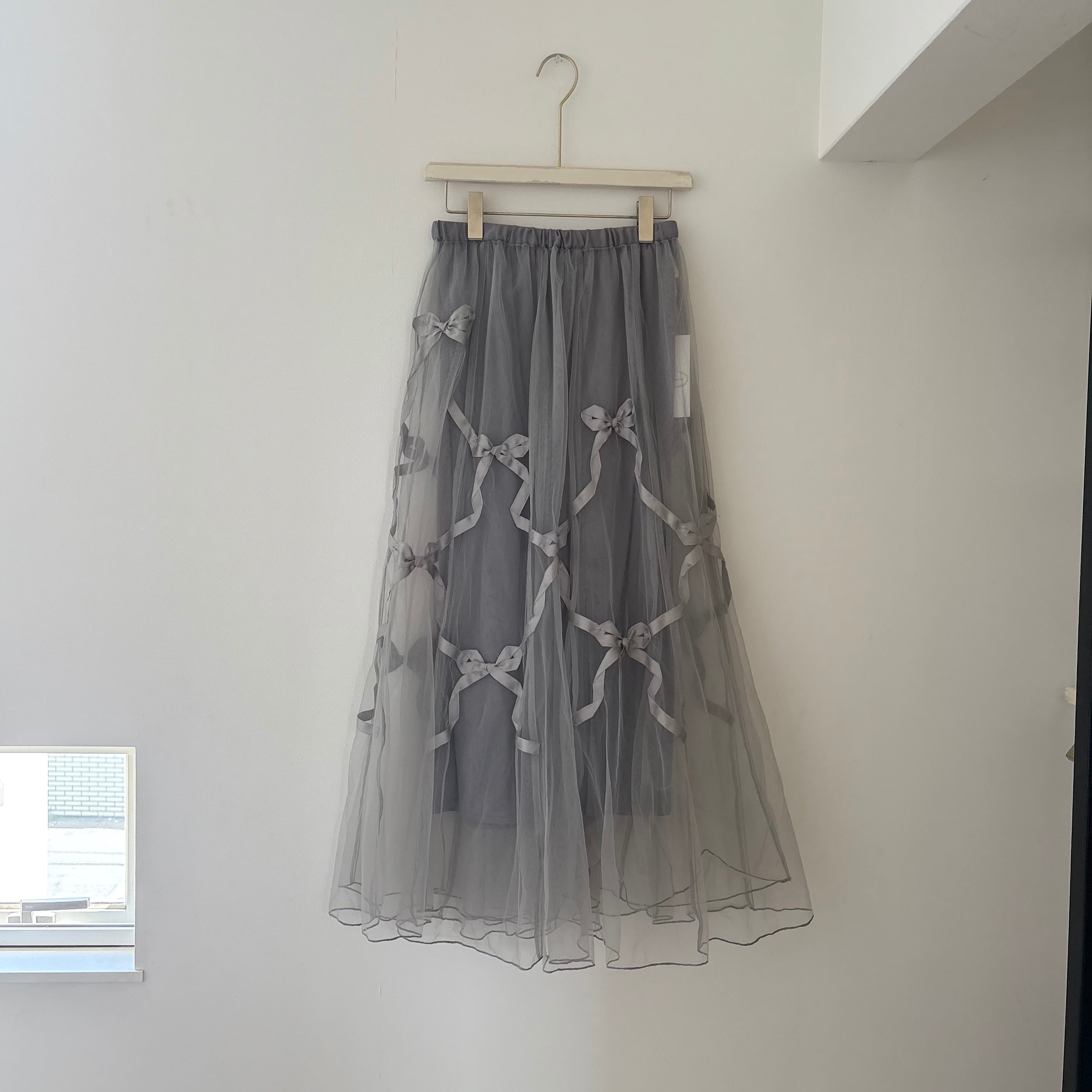 チュールスカートににリボンを施したスカート